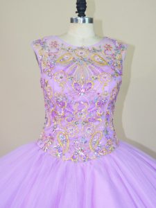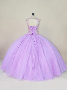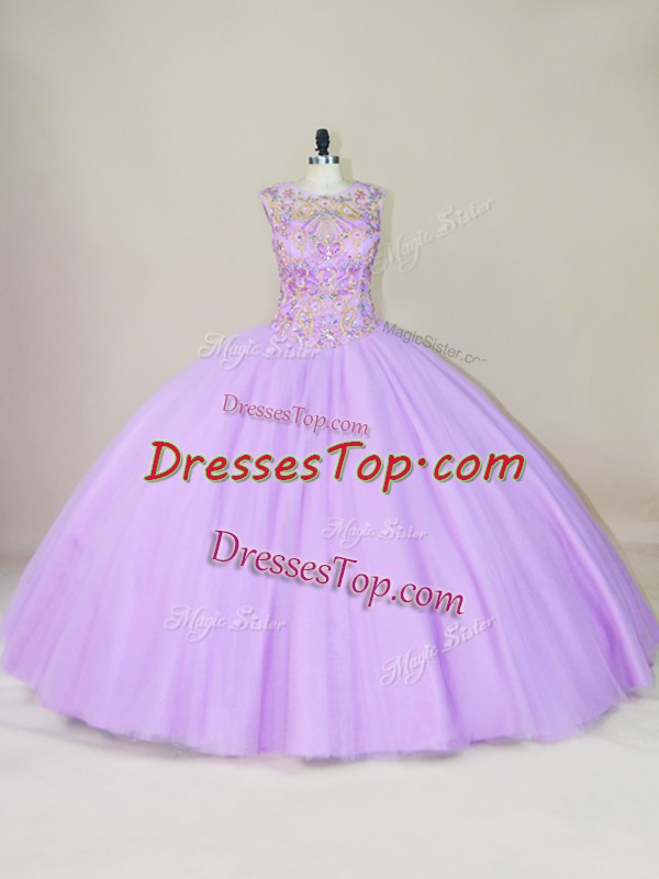 Fantastic Floor Length Lace Up Sweet 16 Dresses Lavender for Sweet 16 and Quinceanera with Beading