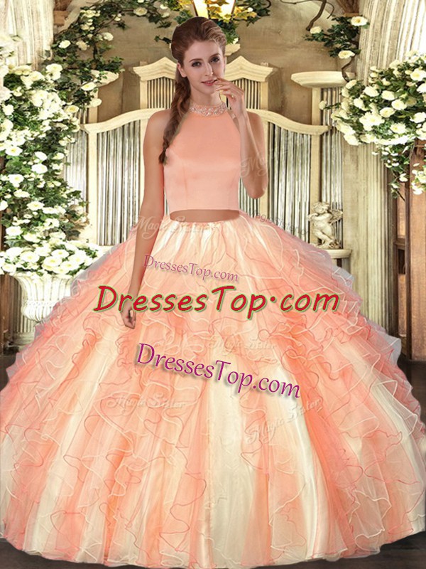 Fantastic Floor Length Orange Red Quinceanera Dresses Organza Sleeveless Beading and Ruffles