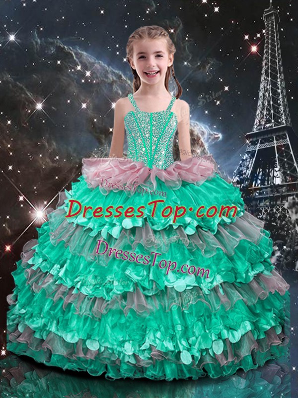 Fantastic Floor Length Turquoise Pageant Dress for Girls Straps Sleeveless Lace Up