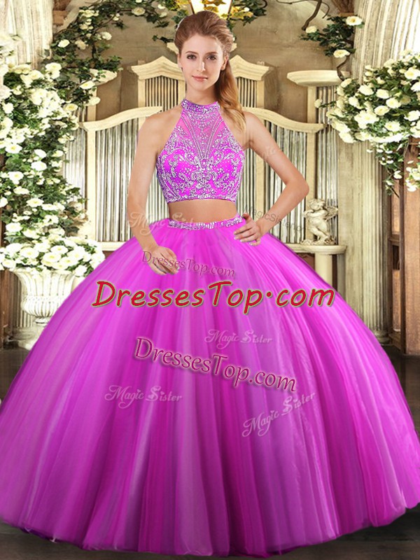 Fantastic Fuchsia Sleeveless Tulle Criss Cross 15th Birthday Dress for Military Ball and Sweet 16 and Quinceanera