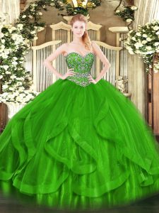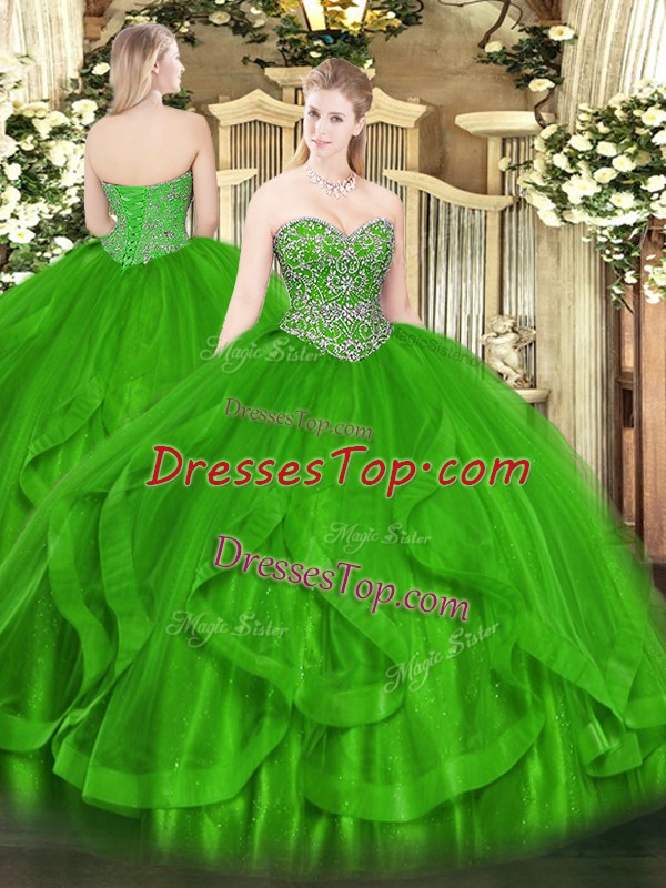 Fantastic Green Tulle Lace Up Ball Gown Prom Dress Sleeveless Floor Length Beading and Ruffles