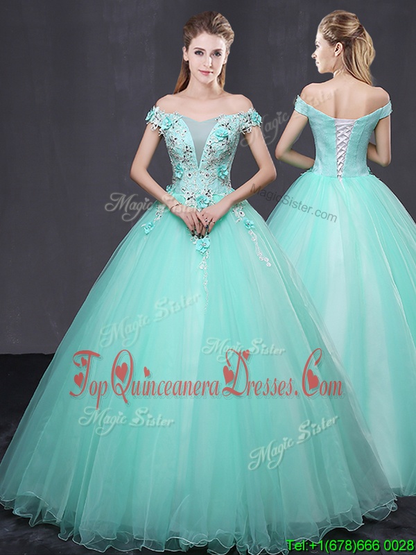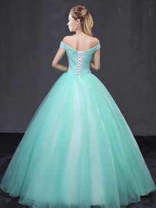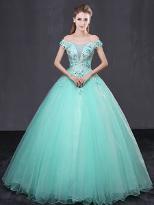 Fantastic Off the Shoulder Sleeveless Lace Up Floor Length Appliques 15th Birthday Dress