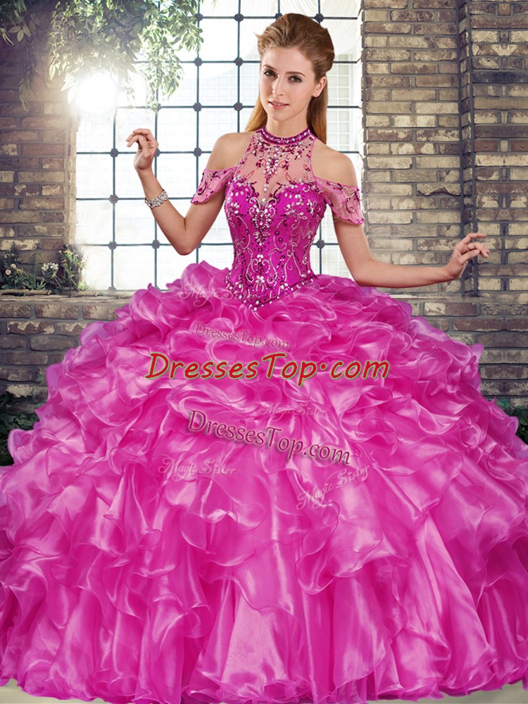 Fantastic Organza Sleeveless Floor Length 15 Quinceanera Dress and Beading and Ruffles