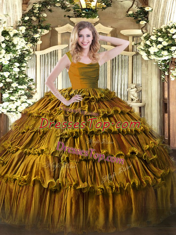 Fantastic Organza Straps Sleeveless Zipper Lace and Ruffled Layers Sweet 16 Dresses in Brown