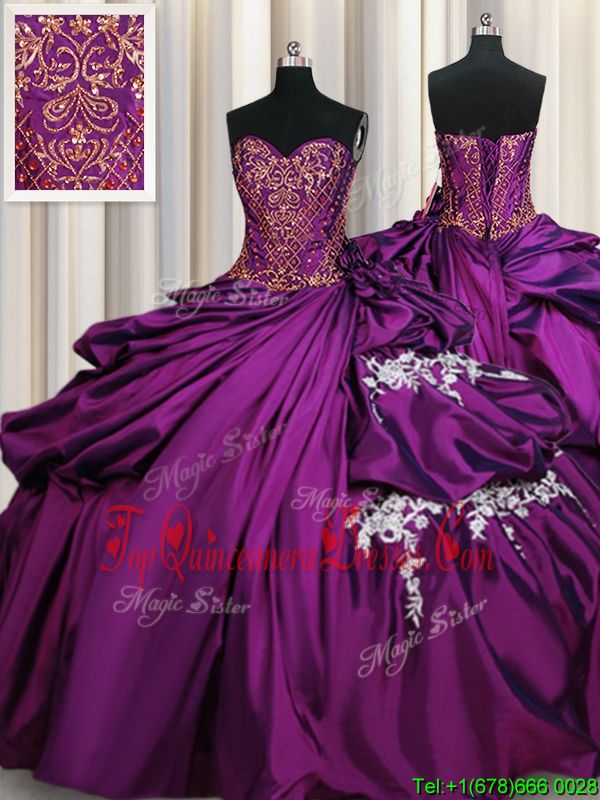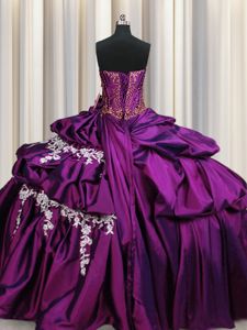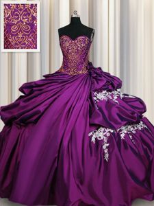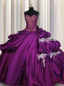 Fantastic Purple Taffeta Lace Up Sweetheart Sleeveless Floor Length Sweet 16 Dresses Beading and Appliques