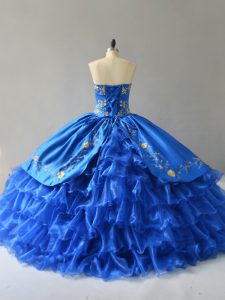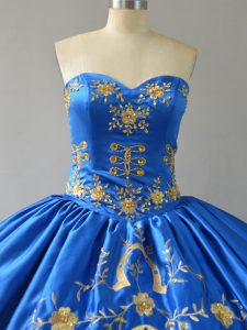 Fantastic Royal Blue Satin Lace Up Quinceanera Dress Sleeveless Floor Length Embroidery and Ruffles