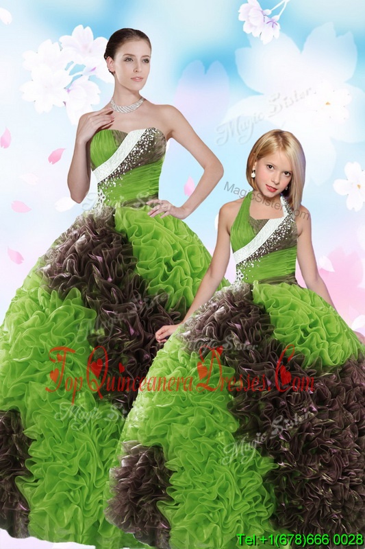 Fantastic Sequins Strapless Sleeveless Lace Up Quinceanera Gown Green Fabric With Rolling Flowers