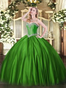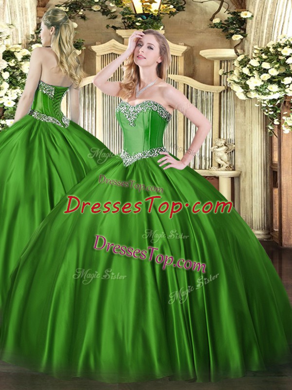 Fantastic Sleeveless Floor Length Beading Lace Up Sweet 16 Dresses with Green