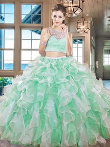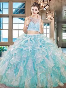 Fantastic Sleeveless Organza Floor Length Side Zipper 15th Birthday Dress in Aqua Blue for with Beading and Ruffles
