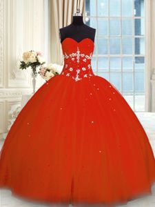 Fantastic Sleeveless Tulle Floor Length Lace Up Quinceanera Dress in Red for with Appliques