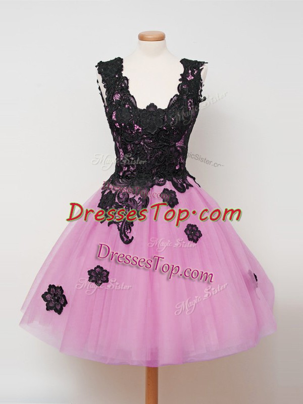 Fantastic Sleeveless Tulle Knee Length Zipper Dama Dress in Lilac with Lace