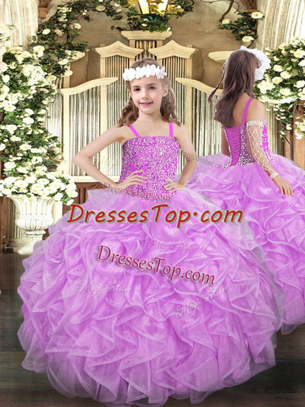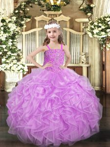Fantastic Straps Sleeveless Lace Up Kids Formal Wear Lilac Organza