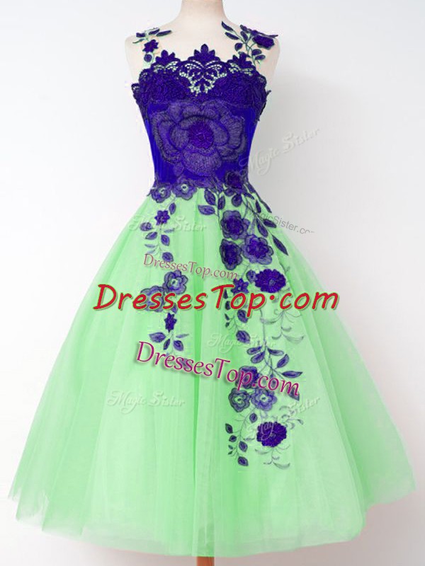 Fantastic Straps Sleeveless Tulle Dama Dress Appliques Lace Up