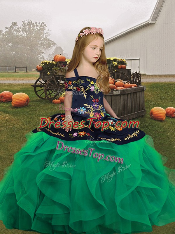 Fantastic Straps Sleeveless Tulle Girls Pageant Dresses Embroidery and Ruffles Lace Up