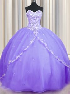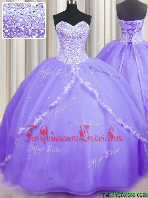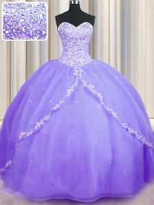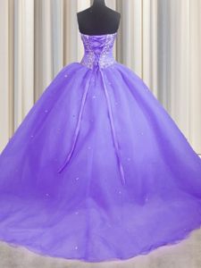 Fantastic Sweetheart Sleeveless Organza Quinceanera Gowns Beading and Appliques Brush Train Lace Up