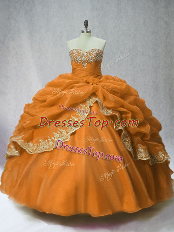 Fantastic Sweetheart Sleeveless Quinceanera Gown Floor Length Beading and Appliques and Pick Ups Brown Organza