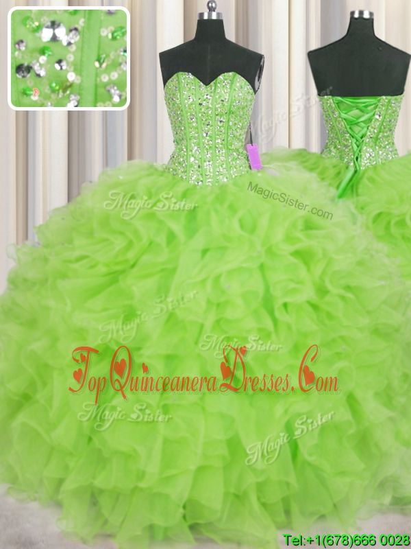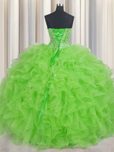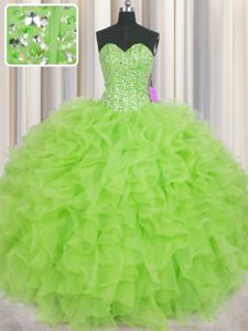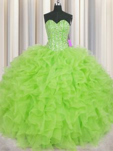 Fantastic Visible Boning Sleeveless Floor Length Beading and Ruffles Lace Up Vestidos de Quinceanera