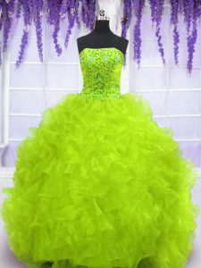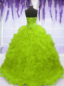 Fantastic Yellow Green Sleeveless Organza Brush Train Lace Up Vestidos de Quinceanera for Military Ball and Sweet 16 and Quinceanera