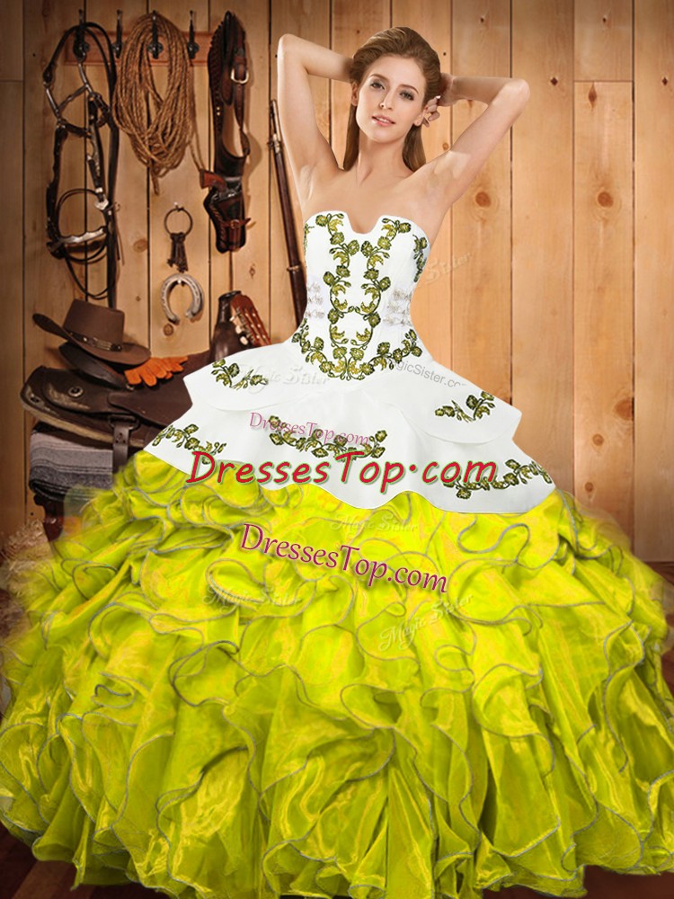Fantastic Yellow Green Strapless Neckline Embroidery and Ruffles Quinceanera Dresses Sleeveless Lace Up