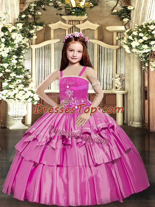 Fashion Ball Gowns Evening Gowns Lilac Straps Taffeta Sleeveless Floor Length Lace Up