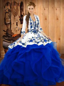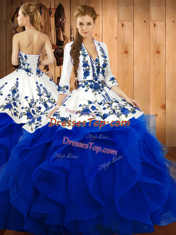 Fashion Ball Gowns Quinceanera Dresses Blue Sweetheart Satin and Organza Sleeveless Floor Length Lace Up