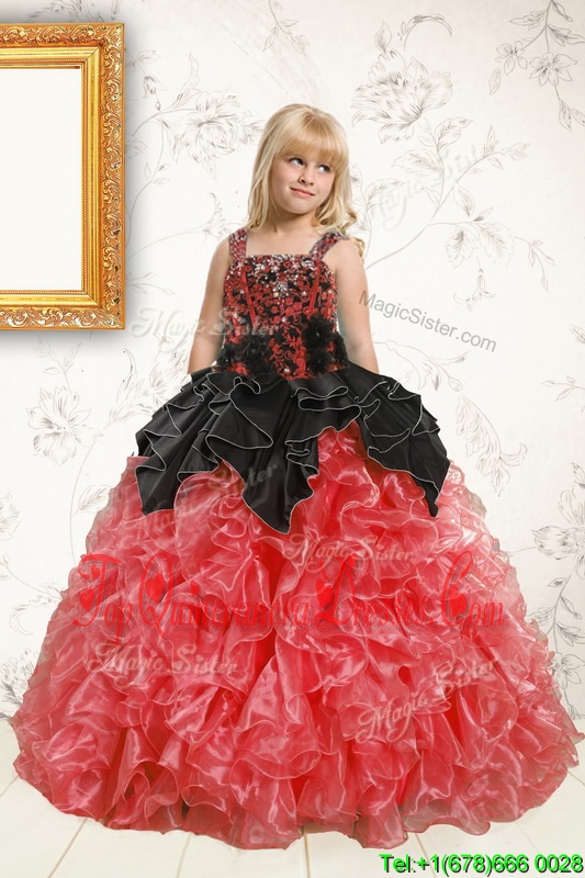Fashion Black and Orange Sleeveless Beading and Ruffles Floor Length Child Pageant Dress