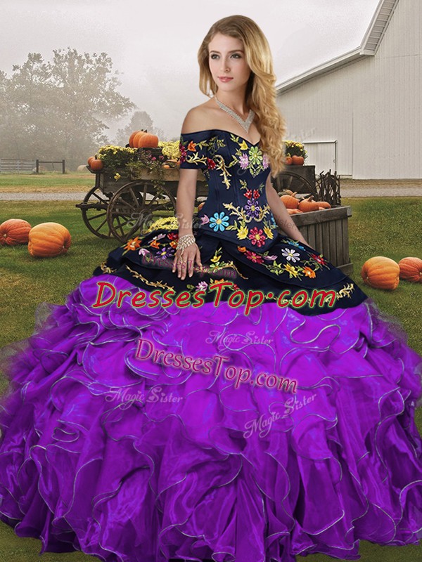 Fashion Black And Purple Sleeveless Organza Lace Up Quinceanera Gowns for Military Ball and Sweet 16 and Quinceanera