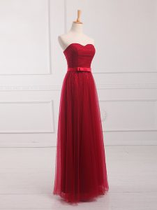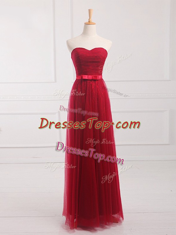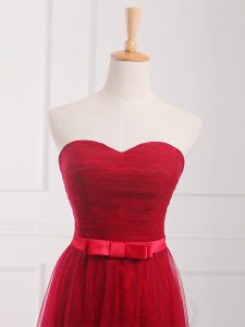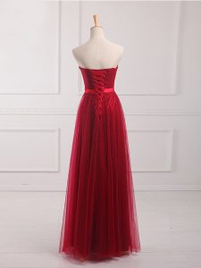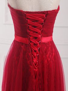 Fashion Empire Dama Dress Wine Red Sweetheart Tulle and Lace Sleeveless Floor Length Lace Up