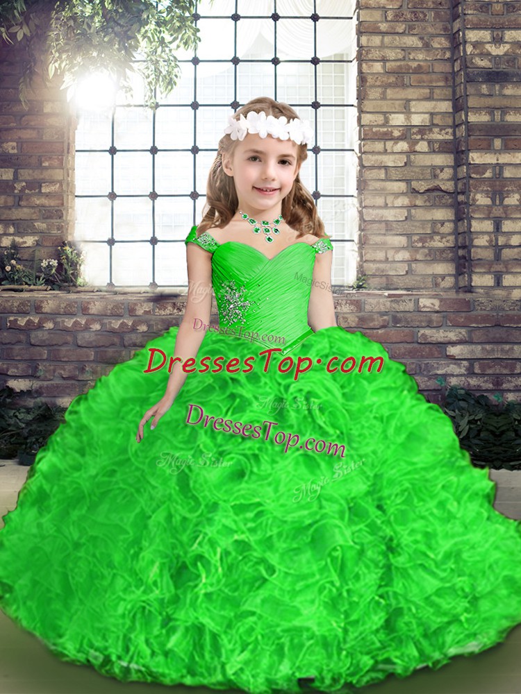 Fashion Floor Length Green Kids Pageant Dress Organza Sleeveless Beading and Ruffles
