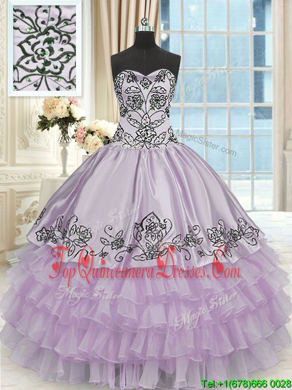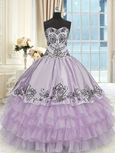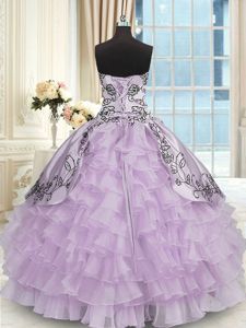Fashion Floor Length Lace Up Vestidos de Quinceanera Lavender and In for Military Ball and Sweet 16 and Quinceanera with Beading and Embroidery and Ruffled Layers