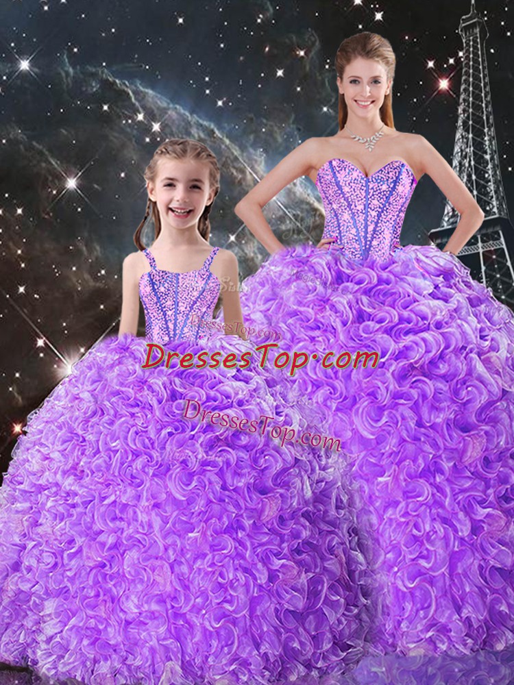 Fashion Lavender Organza Lace Up Sweetheart Sleeveless Floor Length 15 Quinceanera Dress Beading and Ruffles