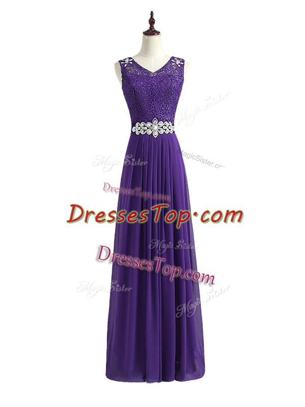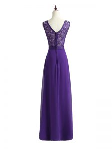 Fashion Lavender Sleeveless Beading and Lace Floor Length Vestidos de Damas