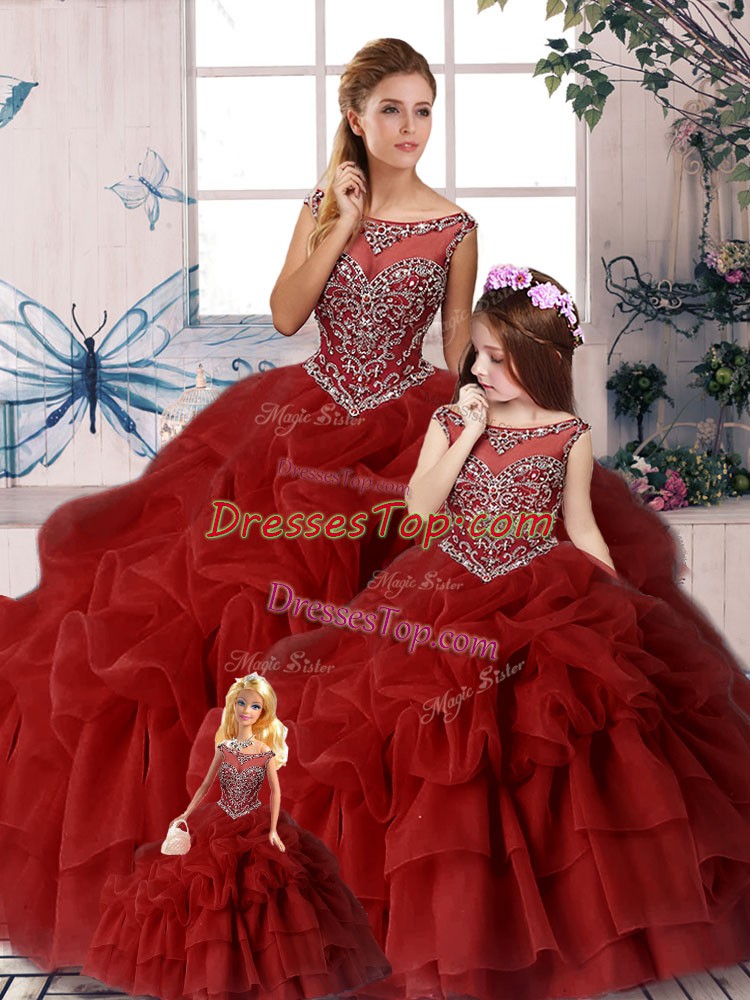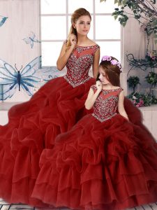 Fashion Organza Sleeveless Quinceanera Gown Brush Train and Beading and Pick Ups