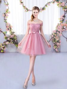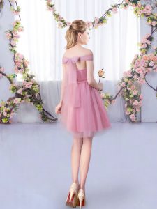 Fashion Pink Sleeveless Mini Length Belt Lace Up Quinceanera Dama Dress