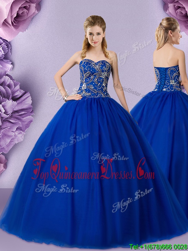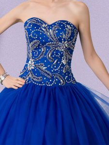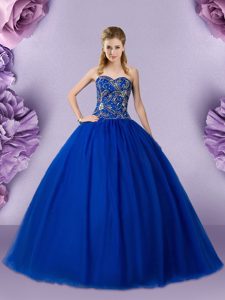Fashion Royal Blue Lace Up Sweetheart Beading 15th Birthday Dress Tulle Sleeveless