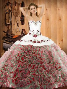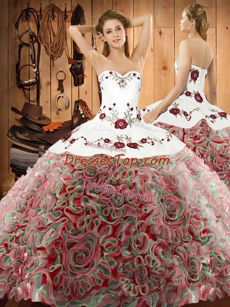 Fashion Sleeveless Embroidery Lace Up Vestidos de Quinceanera with Multi-color Sweep Train