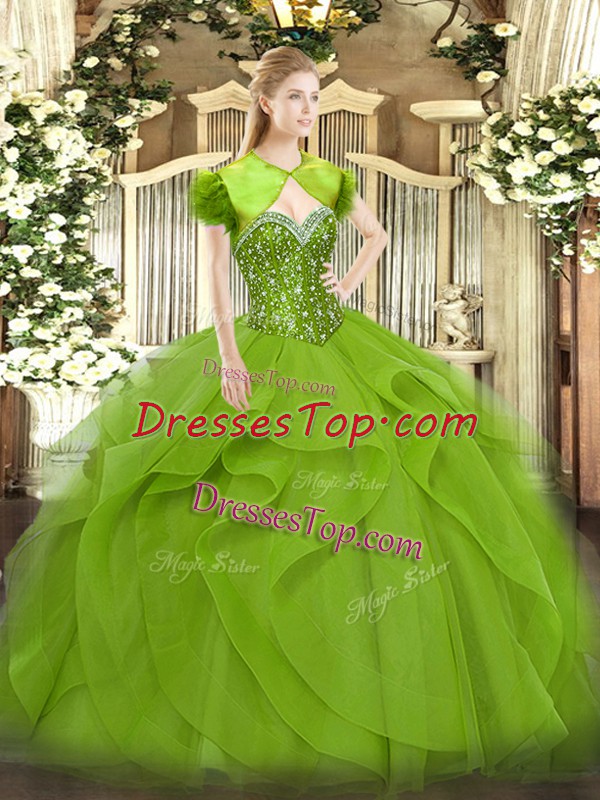 Fashion Sleeveless Tulle Floor Length Lace Up 15 Quinceanera Dress in with Beading and Ruffles