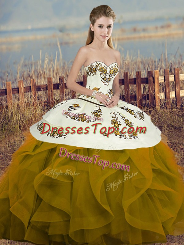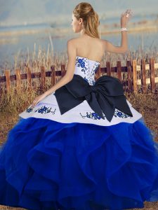 Fashion Sweetheart Sleeveless Tulle Sweet 16 Dresses Embroidery and Ruffles and Bowknot Lace Up