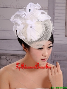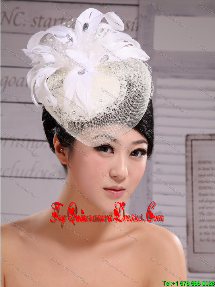 Fashion White Feather And Net Pearl Tire Fascinators