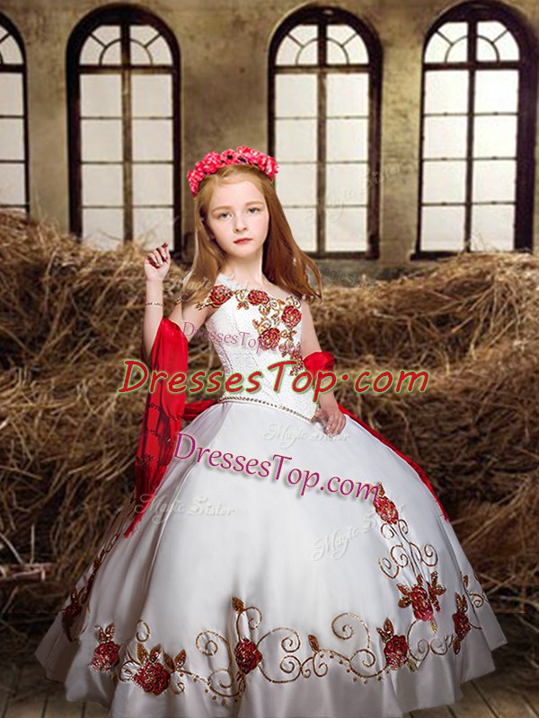 Fashion White Kids Pageant Dress Wedding Party with Embroidery Off The Shoulder Sleeveless Lace Up