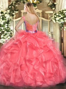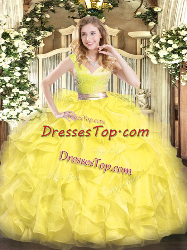 Fashion Yellow Ball Gowns Tulle V-neck Sleeveless Beading and Ruffles Floor Length Zipper 15 Quinceanera Dress