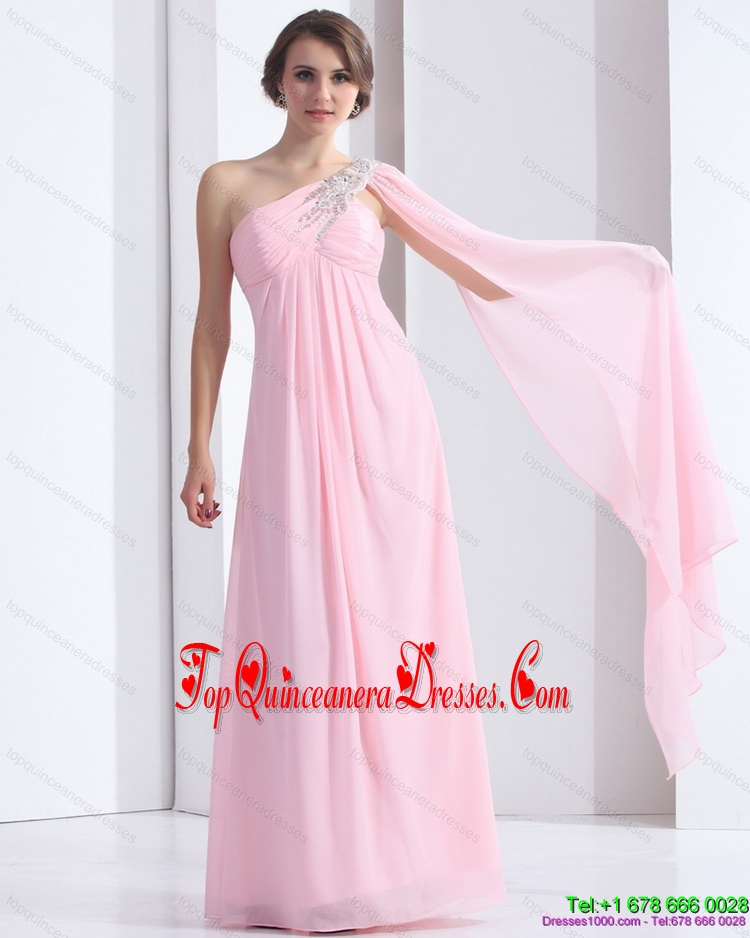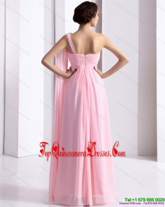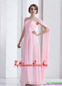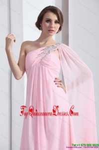 Fashionable 2015 One Shoulder Baby Pink Damas Dress with Ruching and Beading