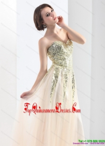 Fashionable 2015 Sweetheart Floor Length Dama Dress with Sequins