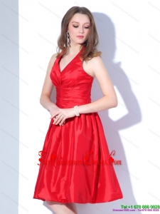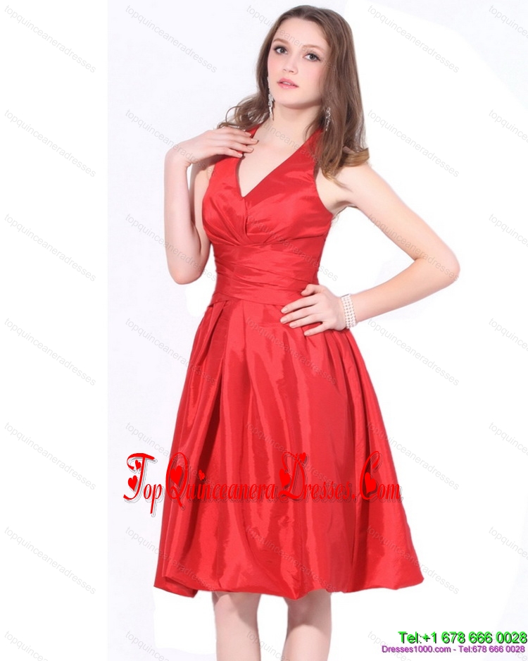 Fashionable 2015 V Neck Knee Length Dama Dress with Ruching