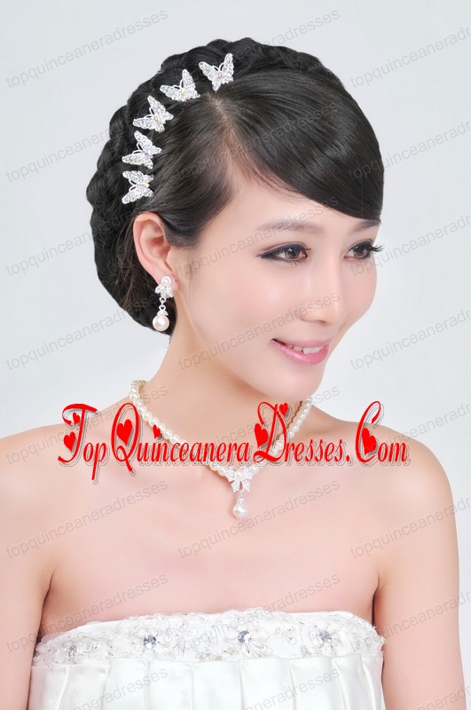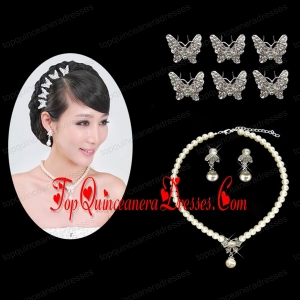 Fashionable Alloy WithPearls Wedding Jewelry Set Including Necklace Earrings And Headpiece
