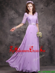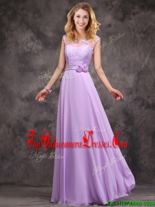 Fashionable Applique and Laced Lavender Long Damas Dress in Chiffon