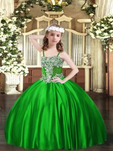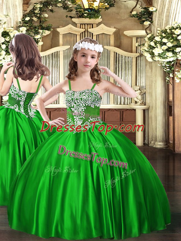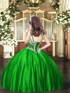 Fashionable Appliques Kids Pageant Dress Green Lace Up Sleeveless Floor Length