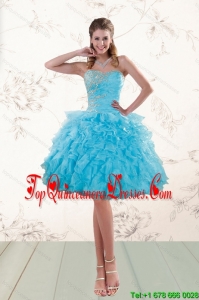 Fashionable Baby Blue Quinceanera Dama Dresses with Beading and Ruffles