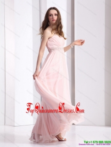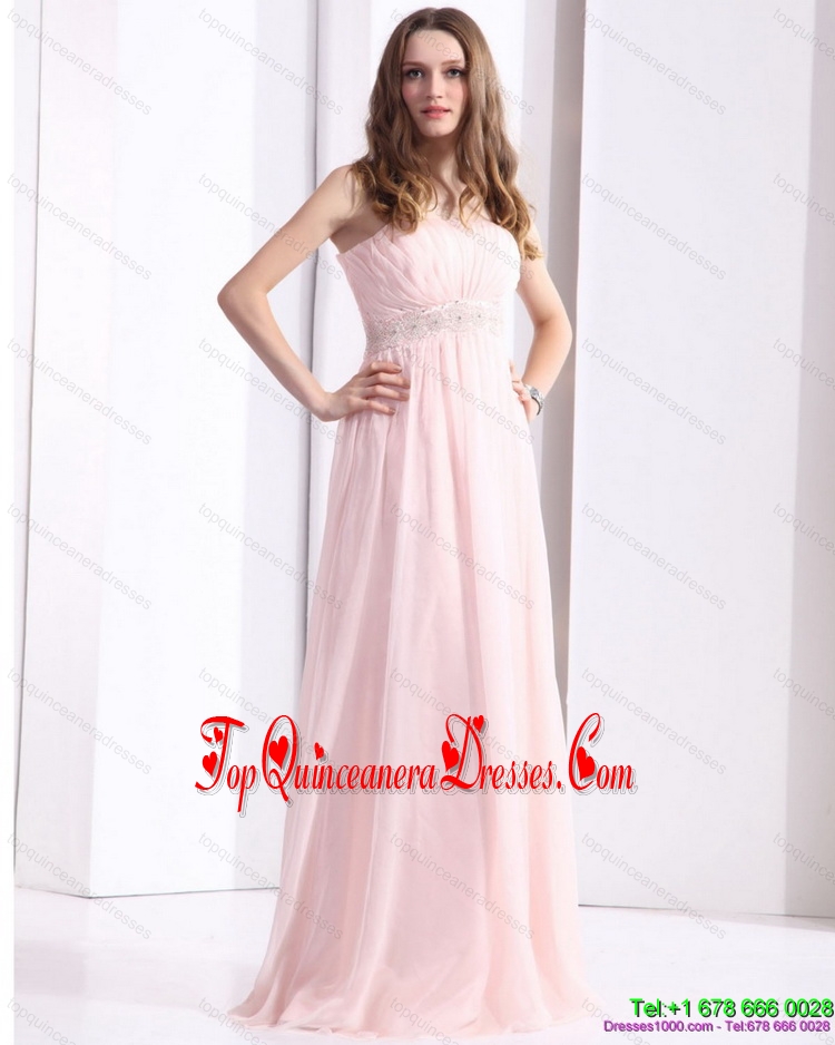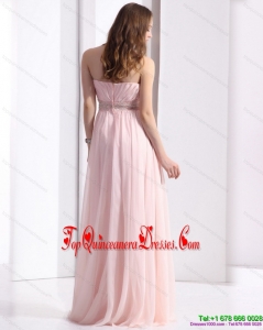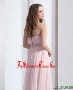 Fashionable Baby Pink Strapless Damas Dresses with Ruching and Beading