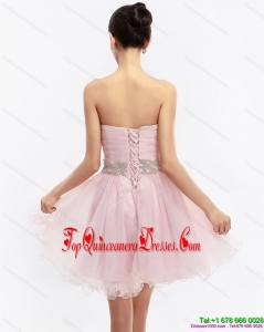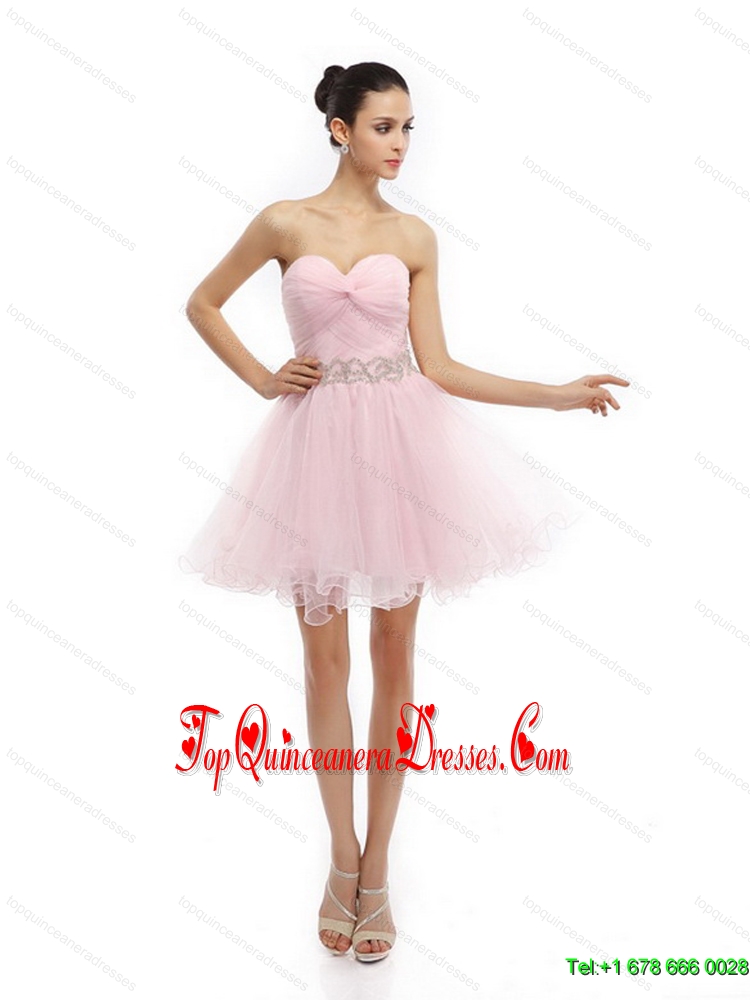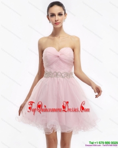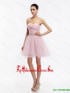 Fashionable Baby Pink Sweetheart Ruching Short Damas Dresses for 2015